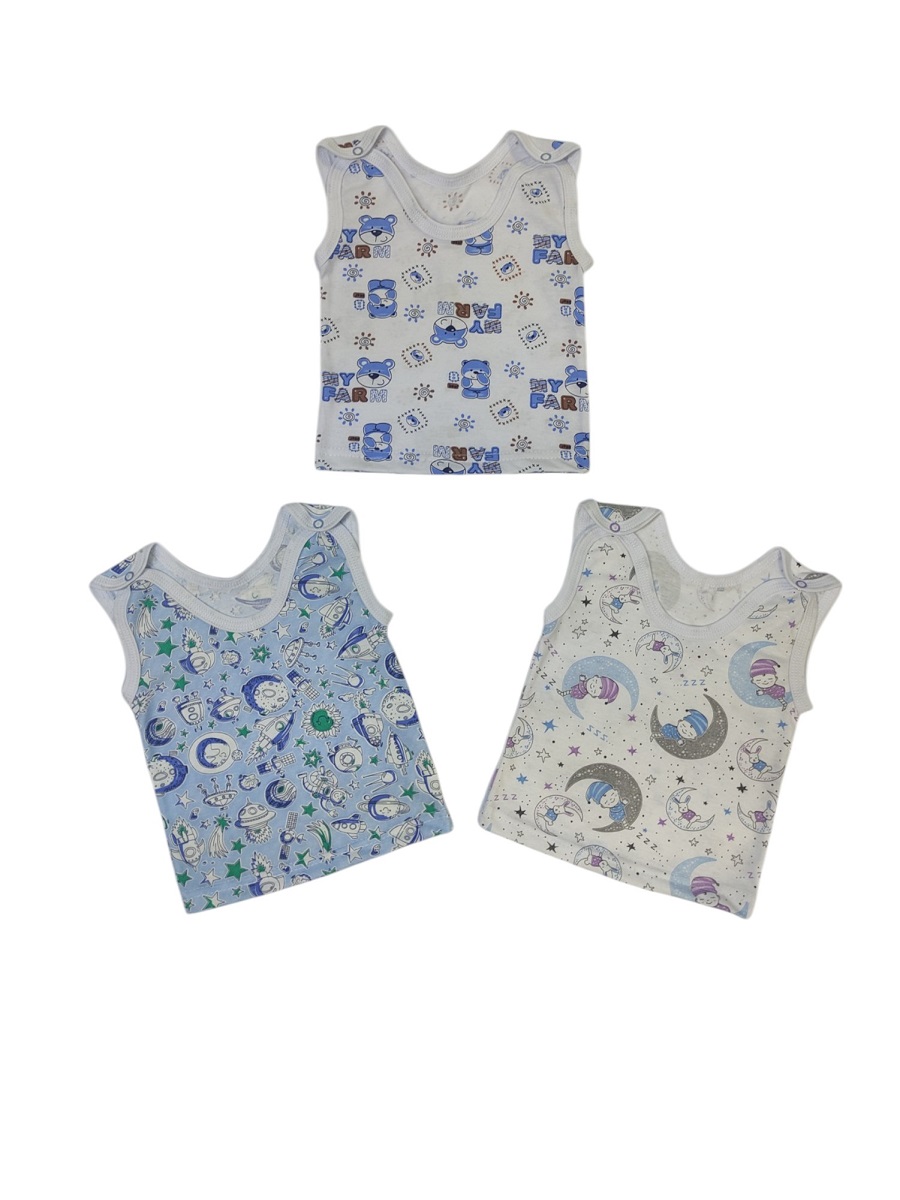 Маечка детская выполнена из 100% хлопка, с кнопочкой на каждом плече.
