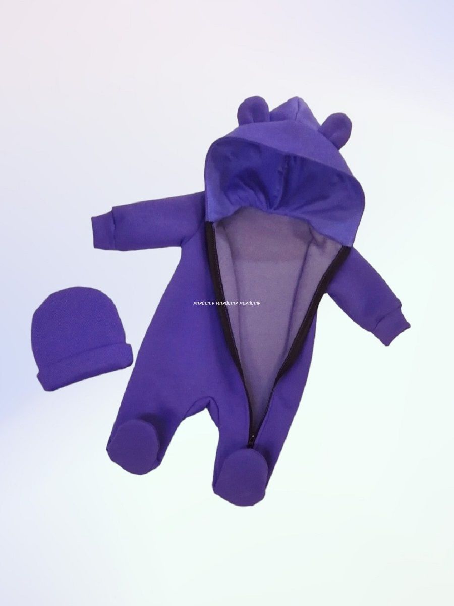 "МоёДитё" комбинезон выполнен из футера с начёсом. Комбинезон с капюшоном на подкладке и декорирован сверху ушками, с закрытыми ножками, рукава на манжетах, спереди косая молния до конца одной ножки. Шапочка из кашкорсе можно одевать как с отворотом, так и без. Очень хорошо тянется.