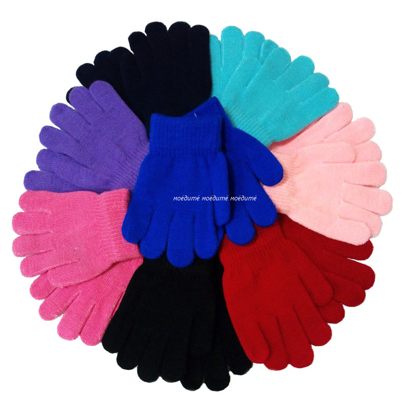 Перчатки однотонные, одинарные, с двойной резинкой.